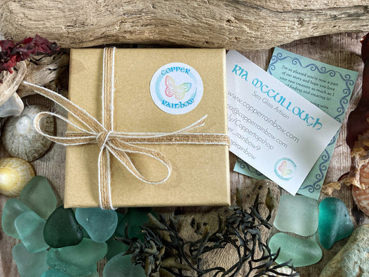 I have a bit of a sea glass obsession here at Copper Rainbow! I love the romance and mystery of finding these shining jewels amongst the pebbles; to walk along the beach with the sound of the waves and the salty sea air, looking for treasures or 'Mermaid Tears'. Knowing that what was once thrown away as trash, has been taken by the ocean, tumbled and shaped over many years into these smooth precious keepsakes. Wondering what their story is and how they came to be there. Getting to spend time out in the elements, close to nature, uplifted and energised yet at peace. Bliss... All our glass is foraged from the beaches on the Northern Irish coast, mainly the famously stunning Glens of Antrim, an area that has held magic and fascination for me since I was a child. Now I get to share that wonder and magic with my CoppertopRainbow baby girl. I adore that I now get to create individual bohemian jewellery pieces that bring back lots of happy memories as I make them, connecting my love of nature and creativity.
