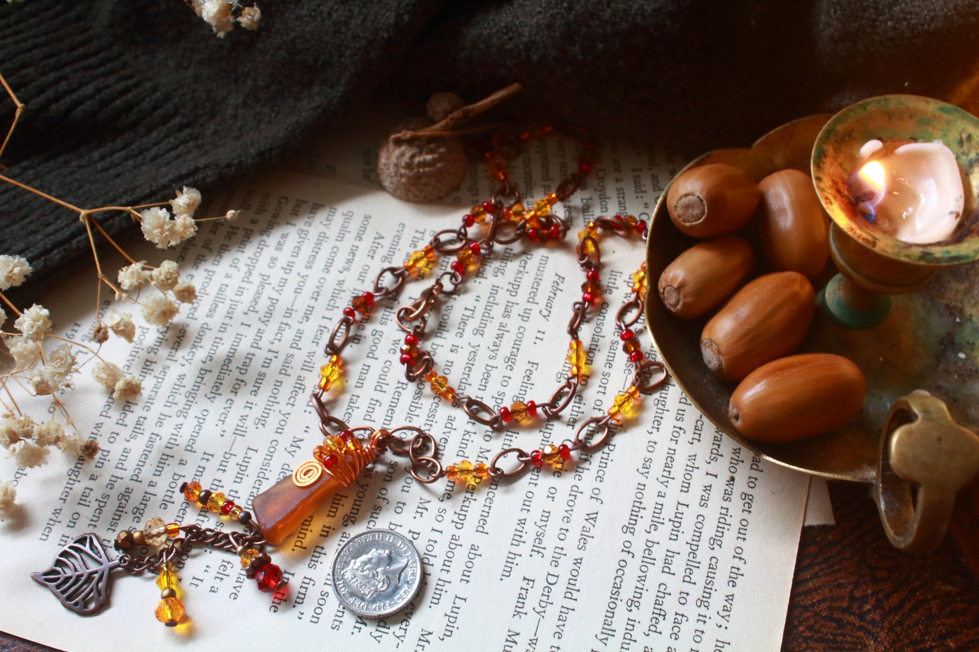 Whether you're kicking piles of leaves, curling up with a pumpkin spiced latte or snuggled in a blanket reading a book by candlelight, this Autumn inspired beaded sea glass necklace captures the colours of the changing season perfectly! A unique piece of the Northern Irish Coast, yours forever...