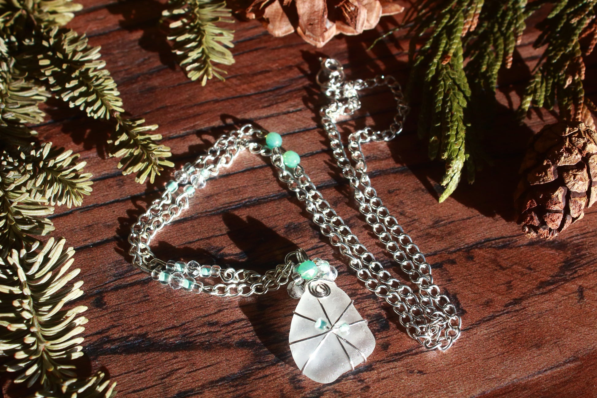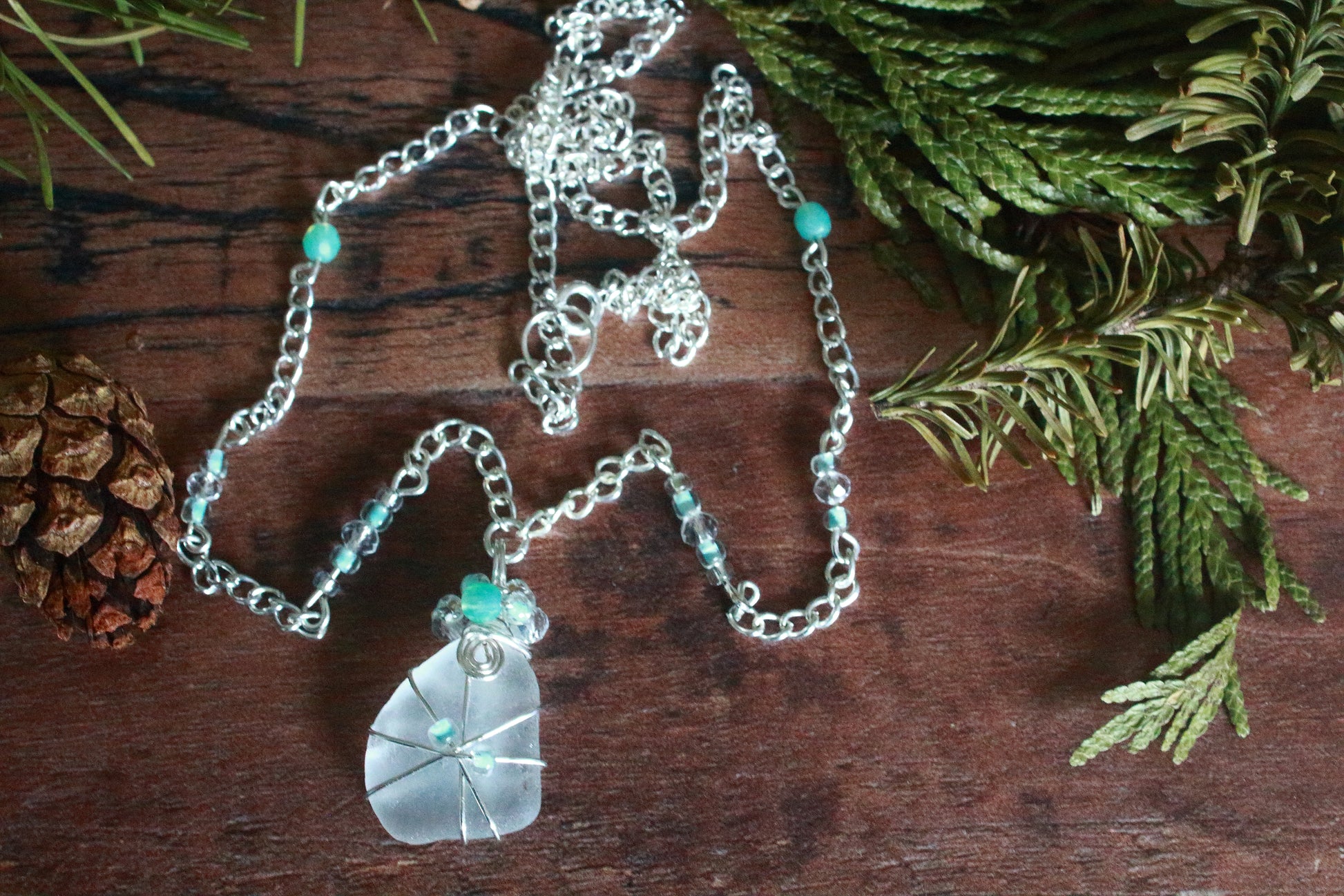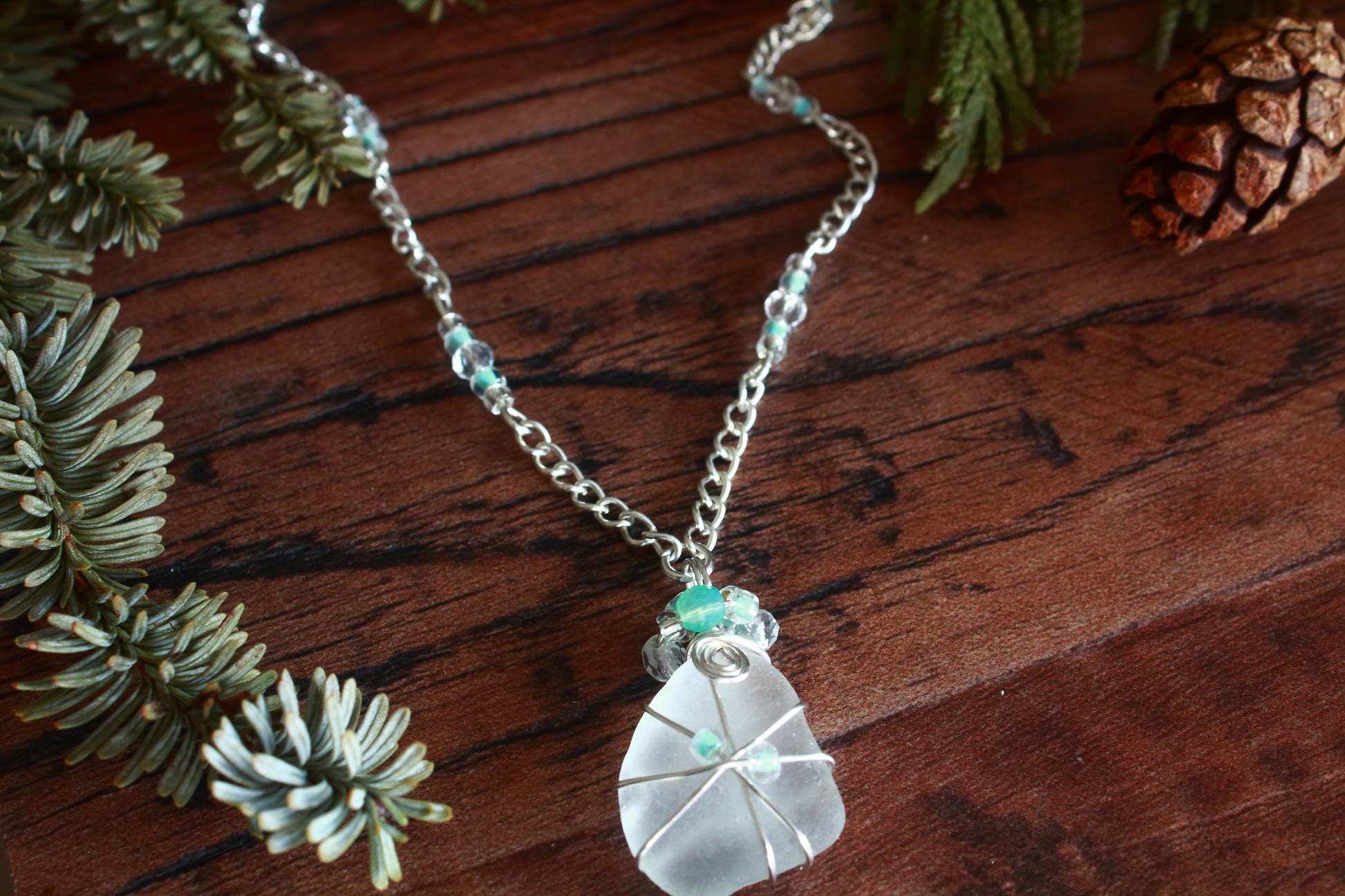 Winter Ice Crystal Sea Glass Necklace