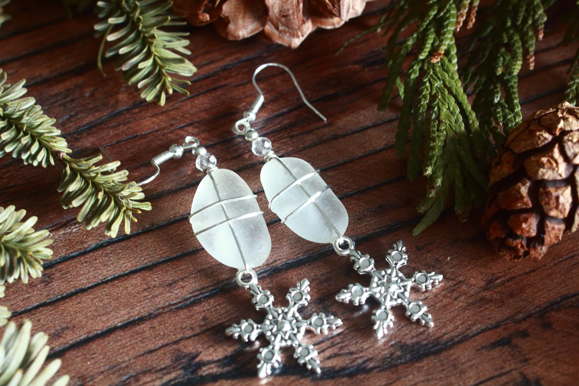~ Complimented by intricate silver tone snowflake charms, they are carefully wrapped with non-tarnish silver plated wire and finished with silver plated French hooks. Prefer hypoallergenic earring backs? Choose the stainless steel option from the drop down menu below